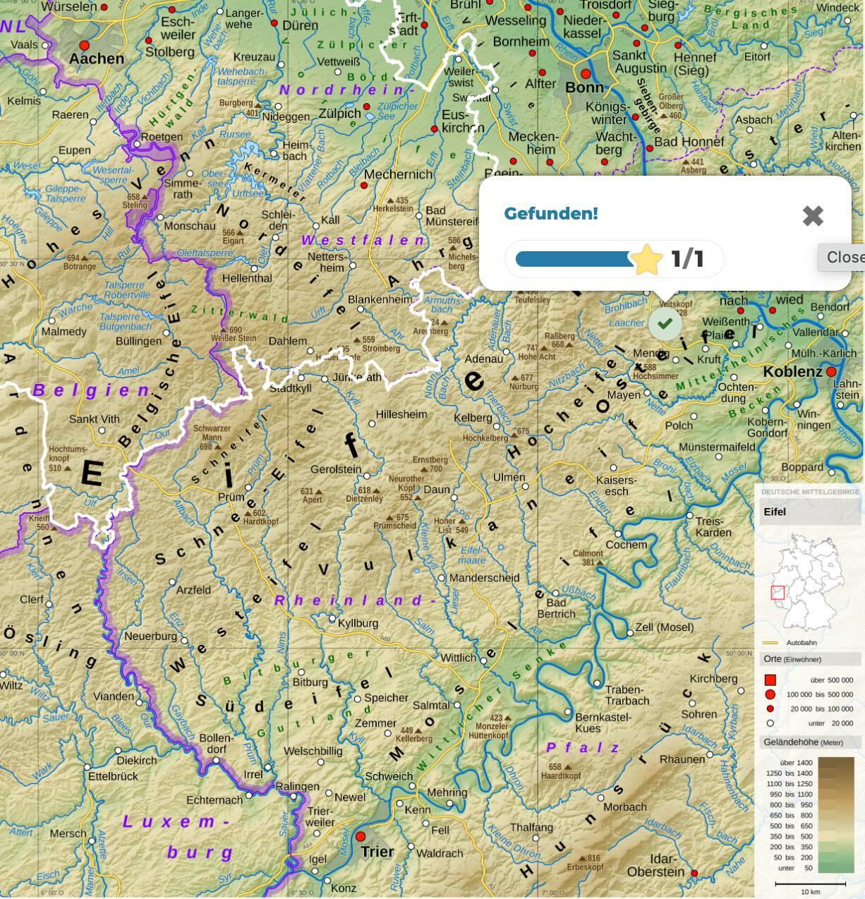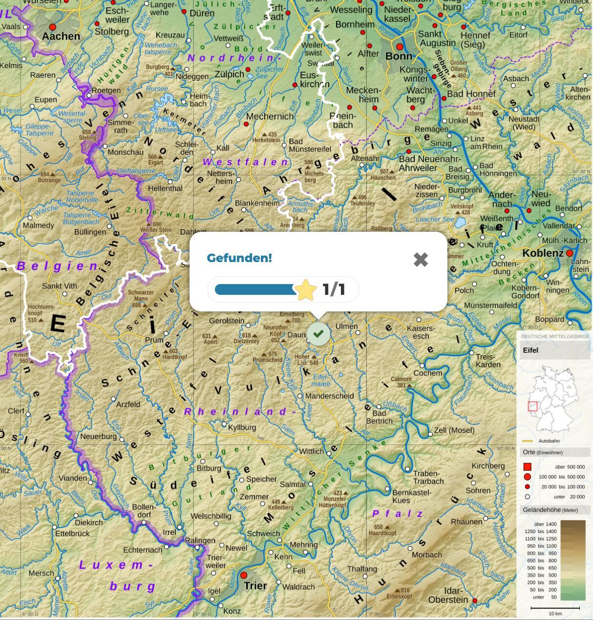 Finde die Vulkaneifel auf der Karte und klicke sie an.