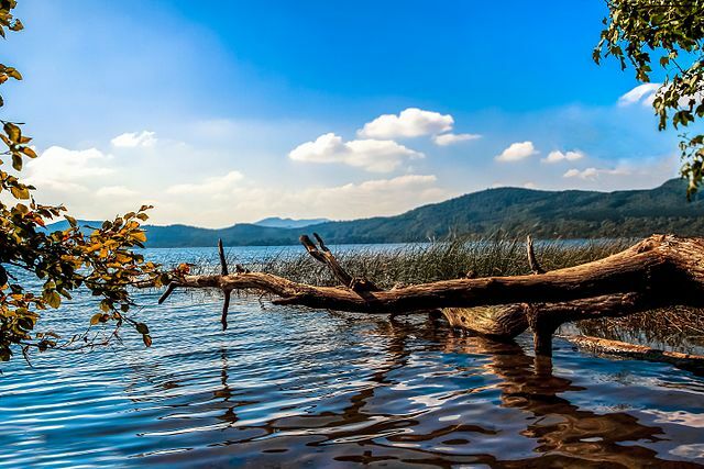 Der Laacher See ist einer der bekanntesten Vulkanseen Deutschlands. Er ist aber kein Maar, sondern eine wassergefüllte Caldera. Calderen sind also Becken, die durch einen Zusammensturz eines bereits ausgebrochenen Vulkans entstehen.