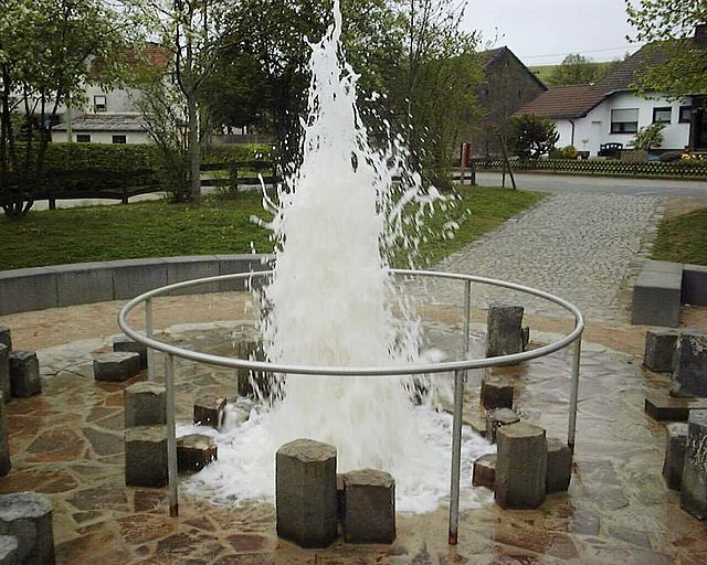 Eine echte vulkanische Besonderheit befindet sich in Wallenborn: der einzige Kaltwasser-Geysir der Eifel. Eine sechsminütige 9 Grad kalte Fontäne schießt hier aus dem Boden, gefolgt von 35 Minuten Pause bis zur nächsten Fontäne. Der Grund dafür ist folgender: Unter der Fontäne liegt eine kohlensäurehaltige Quelle. Durch das ständig austretende Kohlendioxid steigt der Druck im Wasser, bis er nach 35 Minuten so stark geworden ist, dass er den der darüber stehenden Wassersäule übersteigt und das Wasser in einer Fontäne „ausbricht“.