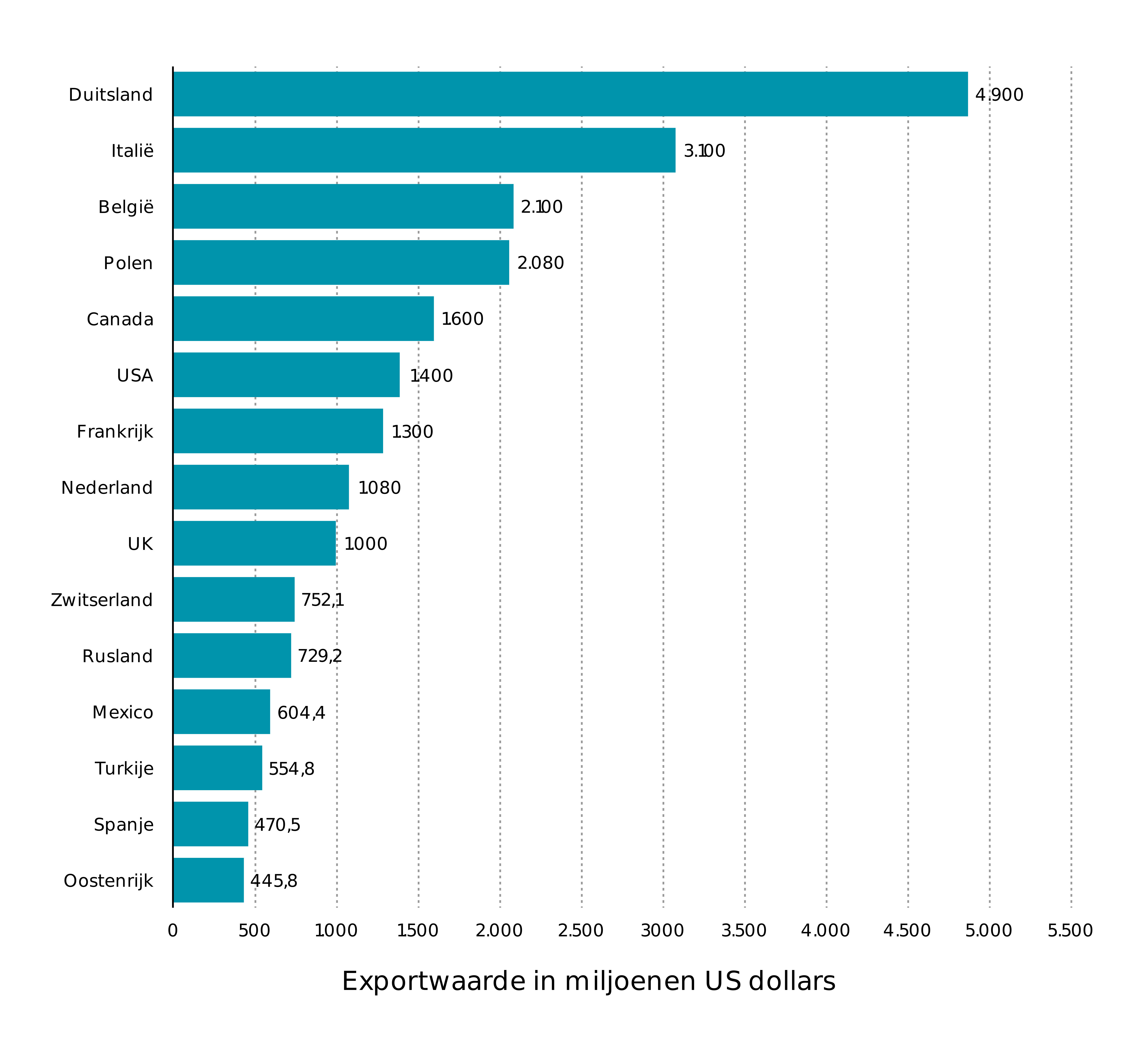 Deze statistiek toont de landen die de meeste chocolade uitvoeren.