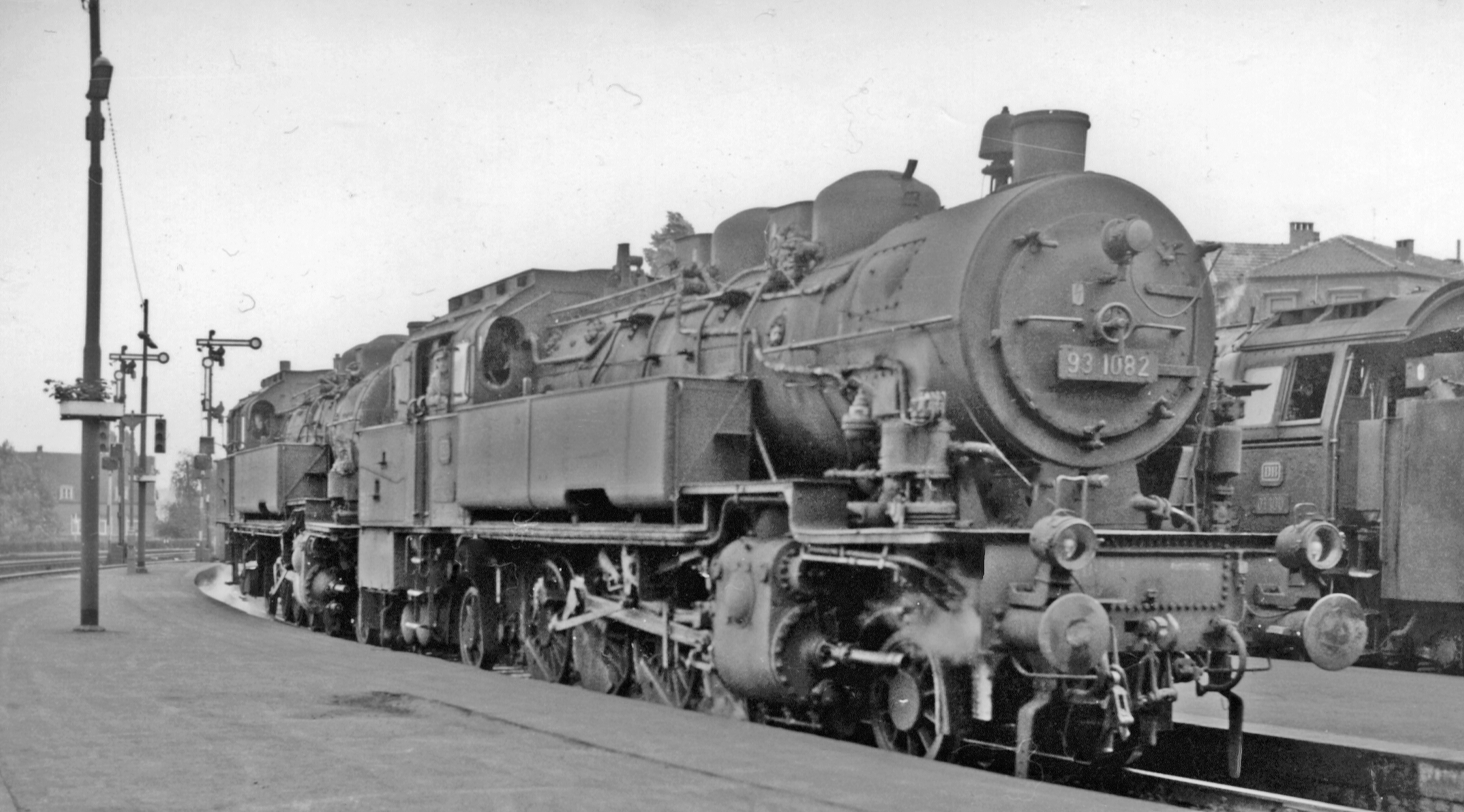 Zwei Dampflokomotiven am Aachener Hauptbahnhof (1961)