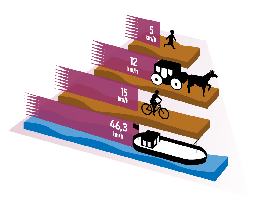 Erkläre die Vorteile der Binnenschifffahrt gegenüber Reisen über den Landweg. Berücksichtige dabei vor allem die möglichen Verkehrsmittel in der Zeit vor der Erfindung der Eisenbahn.