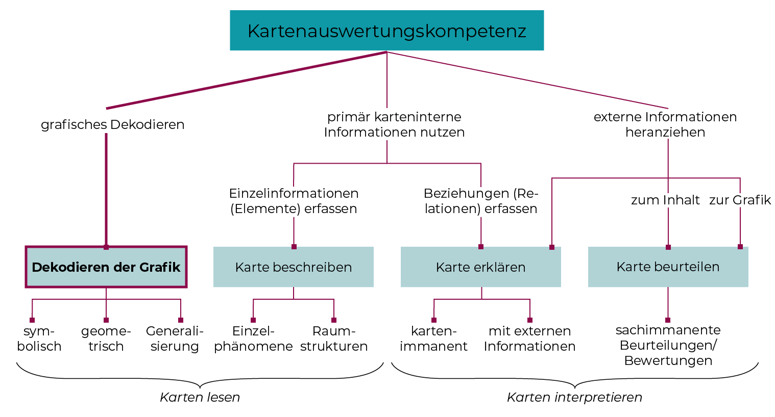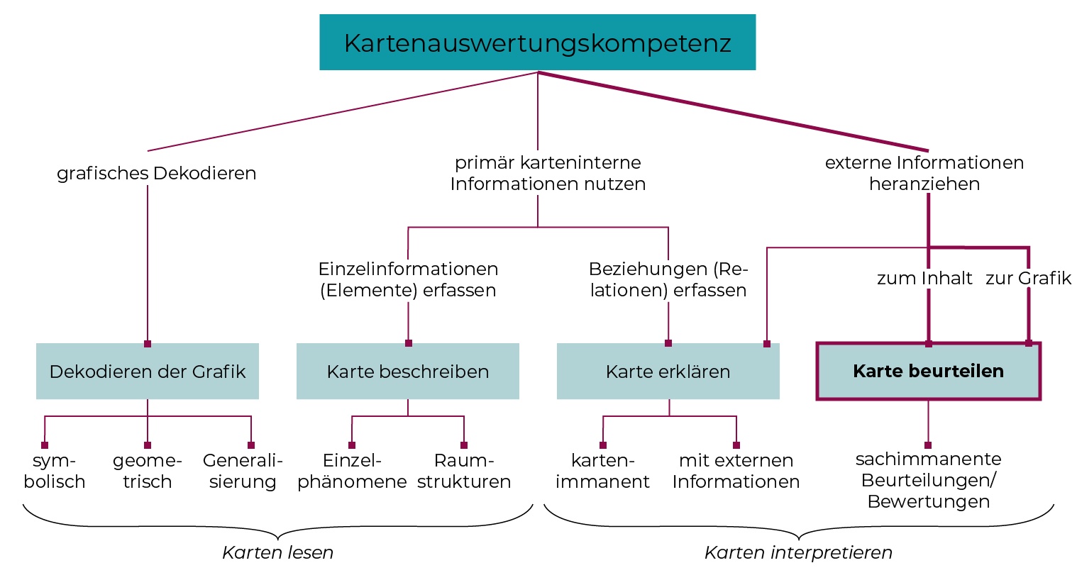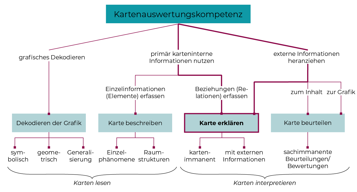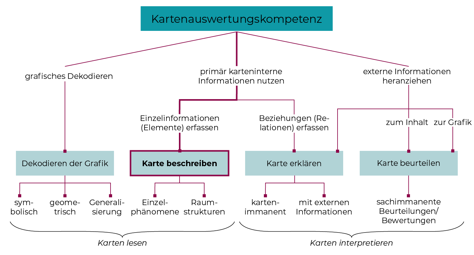 Im Verlauf der einzelnen Unterkapitel kann jeweils anhand der Grafik nachvollzogen werden, welcher FĂ€higkeitsbereich im Umgang mit Karten besonders im Fokus steht.