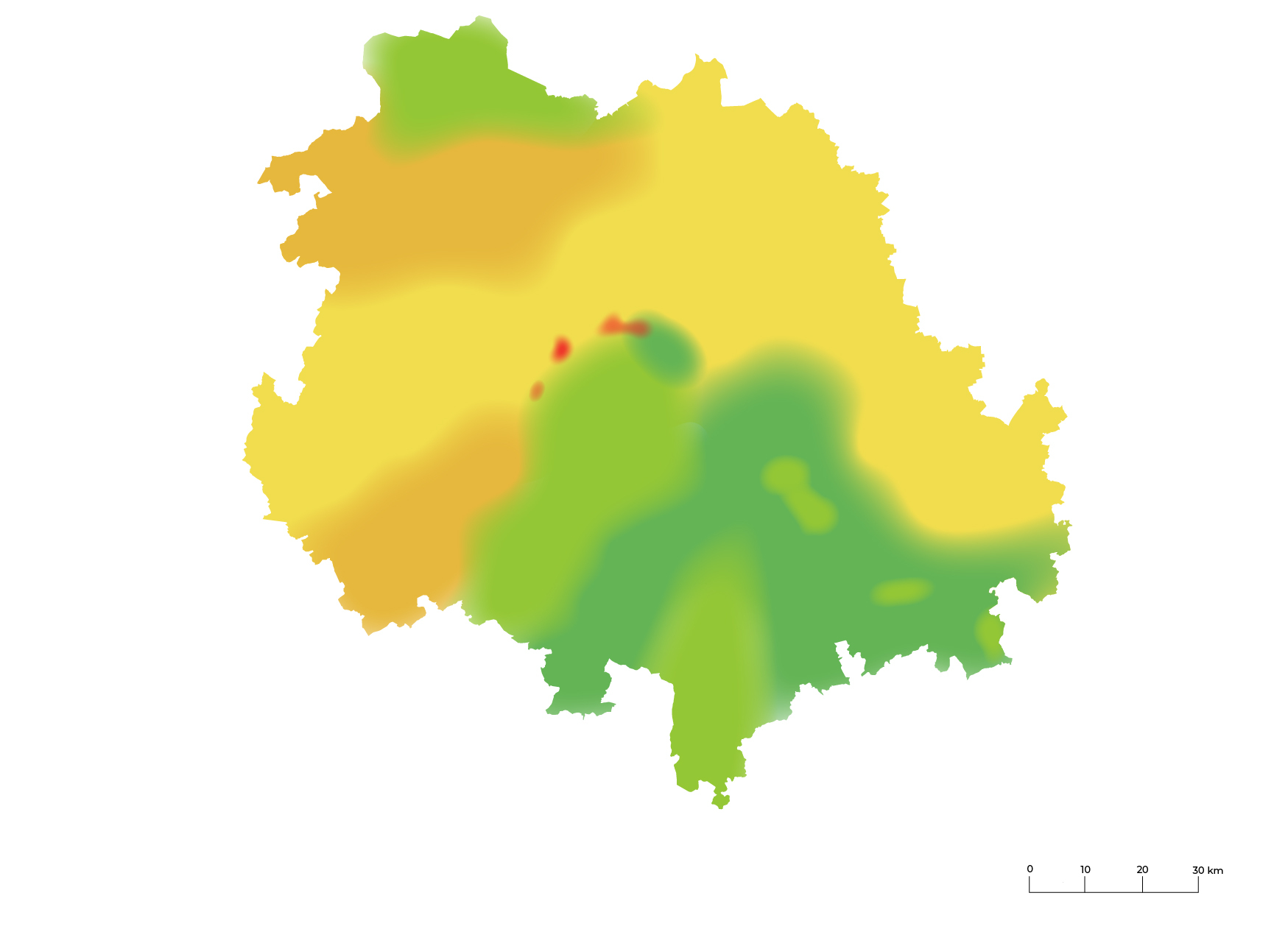 Die Karte zeigt, an welchen Orten es Zu- und Abnahmen der Tage mit mehr als 20 mm Niederschlag pro Jahr gegeben hat. 20 mm Niederschlag bedeuten Starkregen.