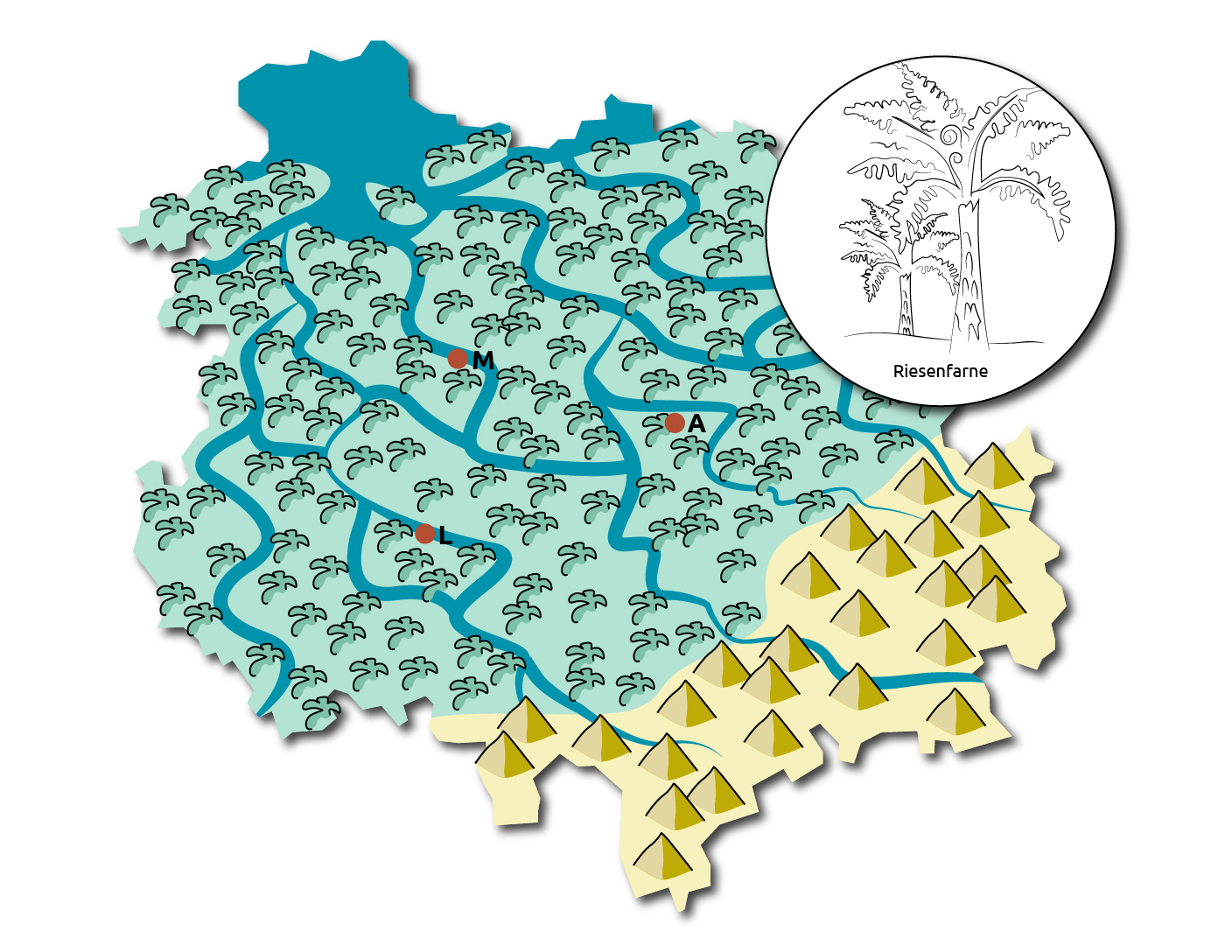 Land-Meerverteilung ab Ende der Unterkarbon-Zeit (vor 358–320 Millionen Jahre) bis höhere Oberkarbon-Zeit (ab vor 358 Millionen Jahre) in der Euregio Maas-Rhein