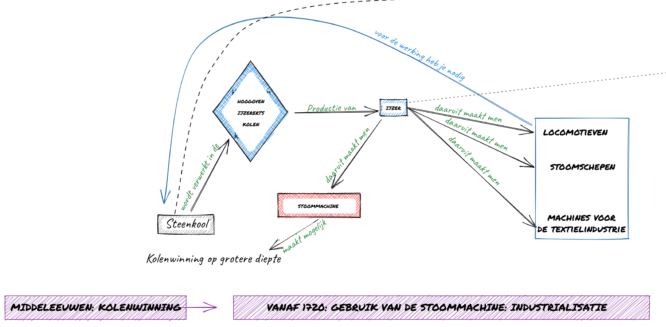 Presenteer het ontstaan van de kolen- en staalindustrie als een causale structuur. Hier leer je wat een interactieve structuur is.
