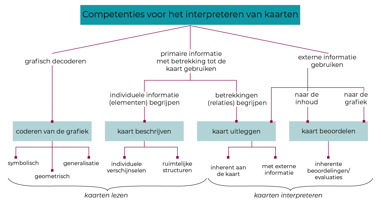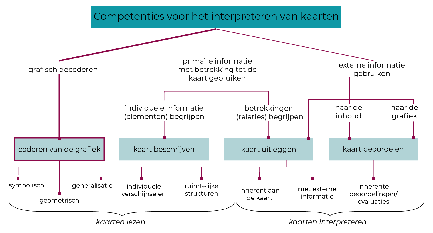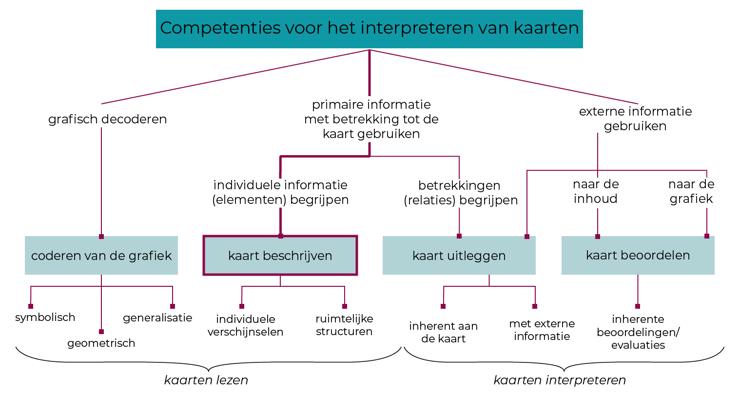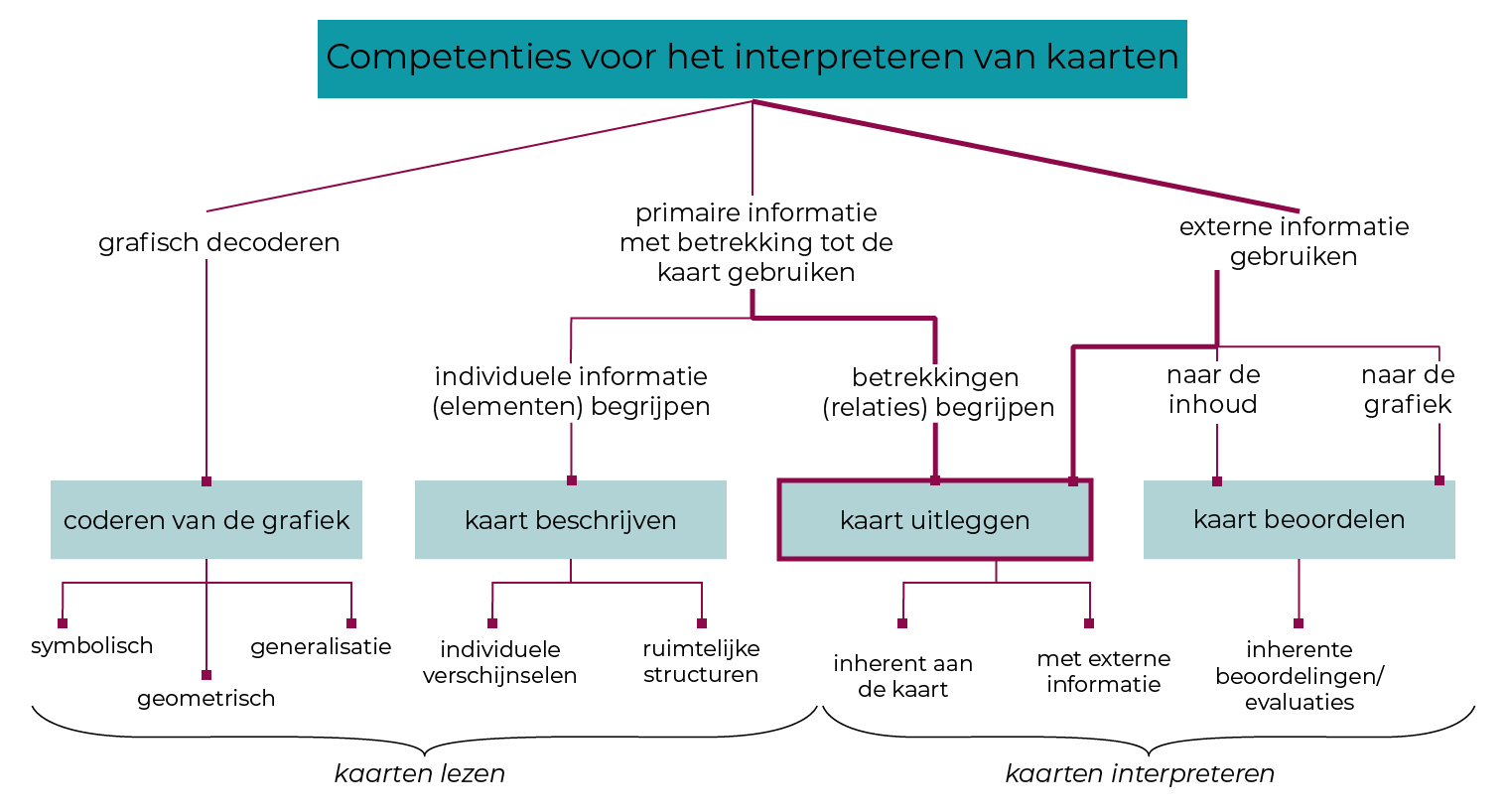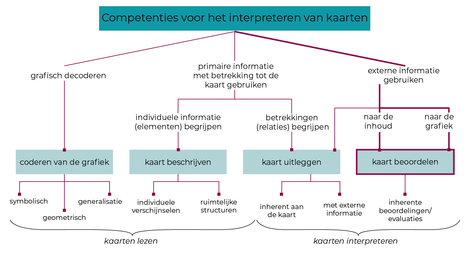 In de loop van de verschillende subhoofdstukken kan je aan de hand van de grafiek steeds zien op welke vaardigheid voor het gebruik van kaarten de focus ligt.