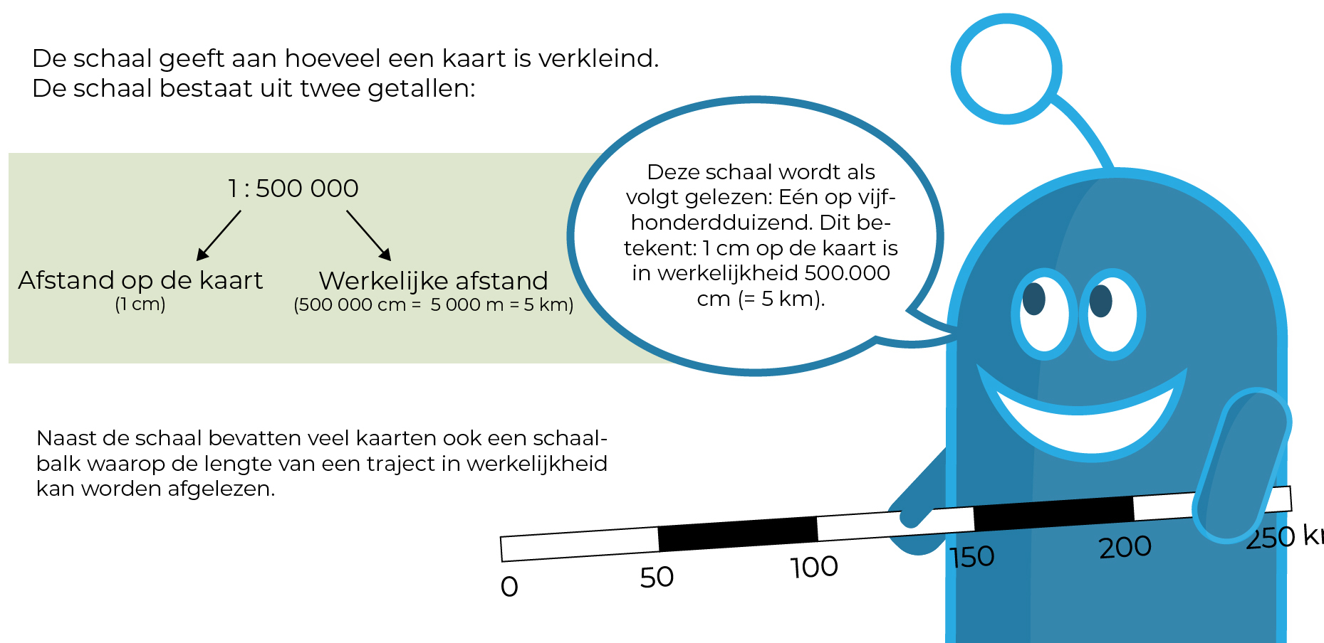 Het hoofdstuk begint met de speciale kenmerken van een kaart (1. Van het beeld naar de kaart) en de eenvoudige basisprincipes voor het lezen van een kaart. Dit omvat oefeningen over het gebruik van de legenda (2. Hoe lees ik een kaart?) en de schaal (3. Hoe bepaal ik de afstand op een kaart?).Â