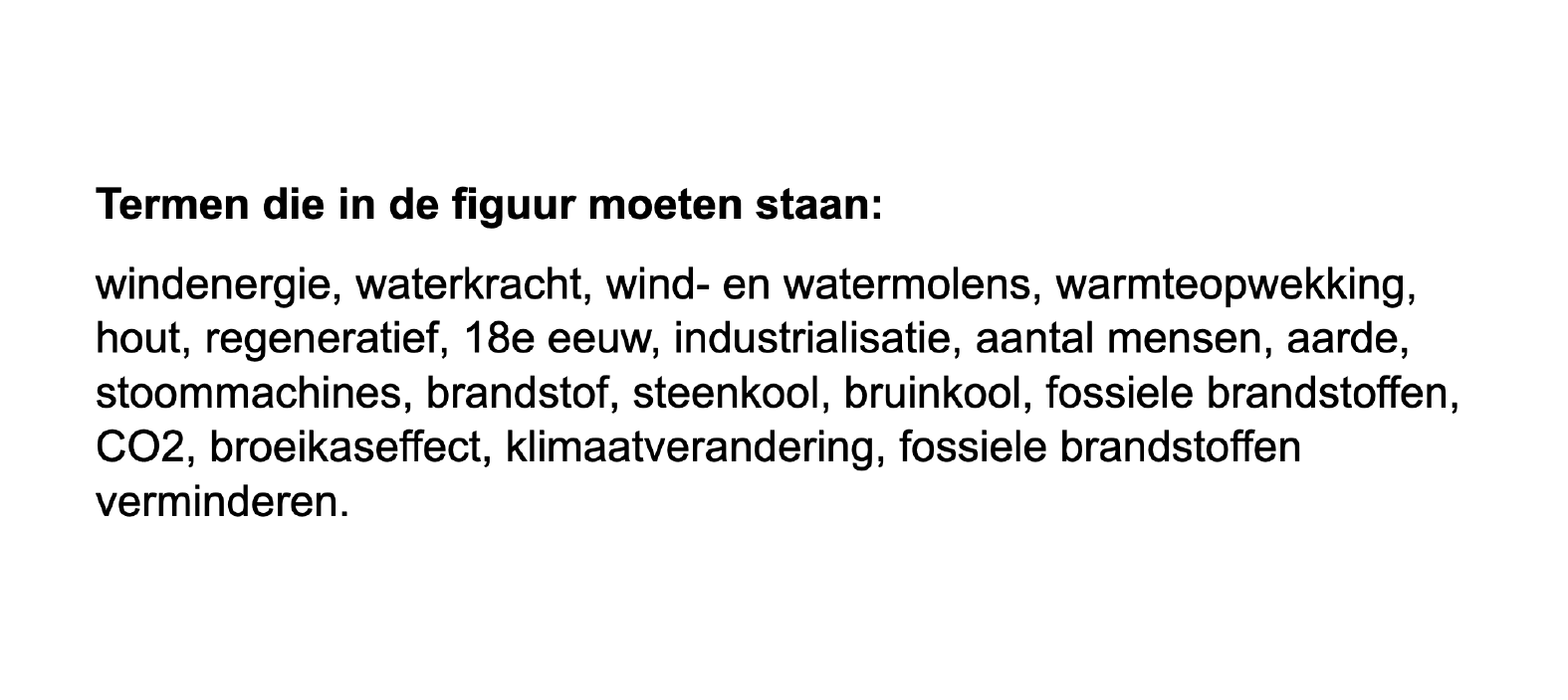 Dit zijn de gemarkeerde begrippen uit de tekst die in de figuur moeten worden weergegeven.