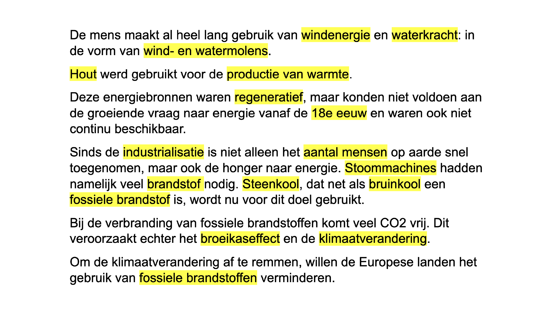De volgende tekst staat in het hoofdstuk over de energie-industrie. De belangrijkste informatie in de desbetreffende tekst is hier gemarkeerd.